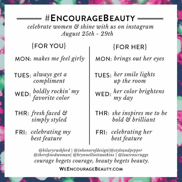 Big news! Honored to be joining Hilary Rushford's #EncourageBeauty movement alongside Lauren Scruggs,The Refined Woman, In Honor Of Design & Style And Pepper. Head to WeEncourageBeauty.com to nab the calendar, manifesto & join us next week as we commit to celebrating our beauty & one another's!
