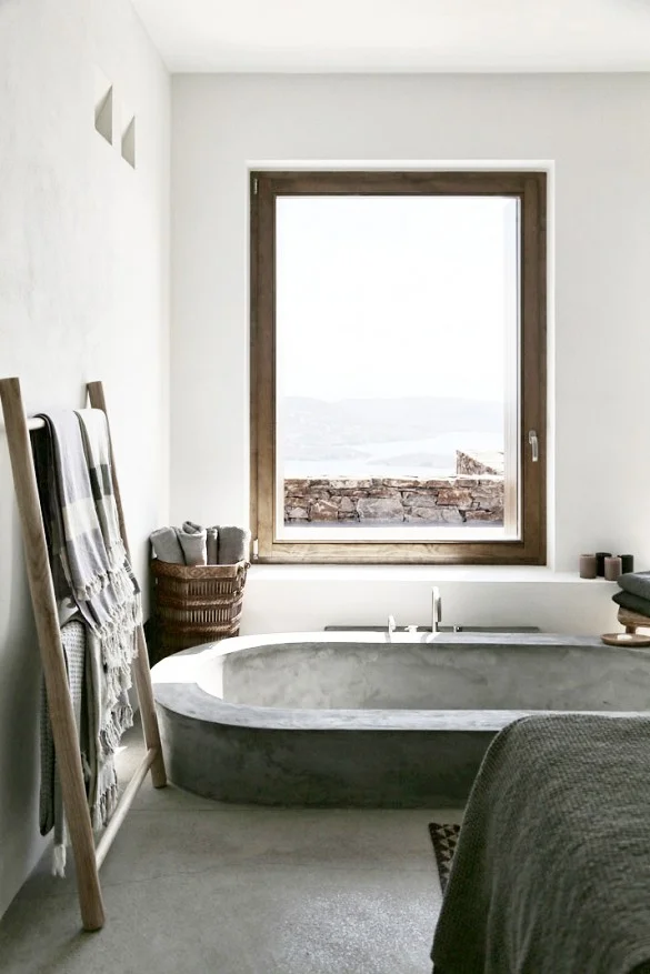 We are back from our dreamy vacay to Santorini, Greece and let me tell you... it may have been my favorite place I have ever been in Europe!!! Fear not--many travel posts and some surprise content are coming soon to Being Elliott. Right now I want to continue in the Greece-kick by sharing this swoon-worthy Greek Isles home. Can I go back already?! Everything from the modern indoor bath to the bohemian woody details have me hooked. To see more of this beauty visit Domaine Home here.