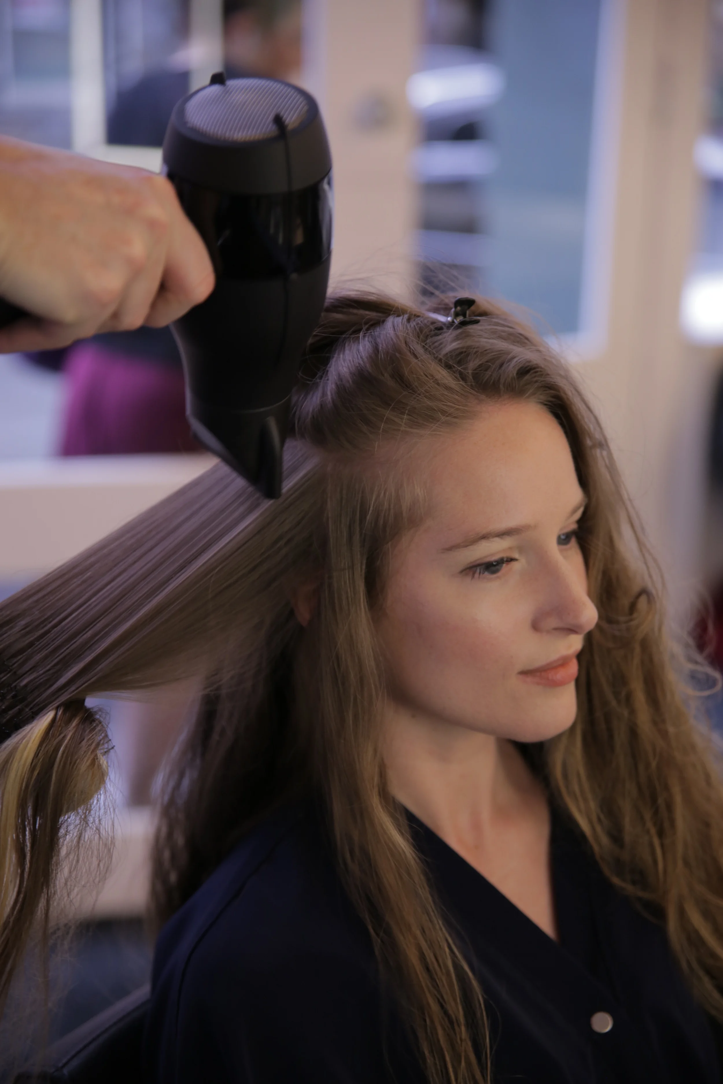 The blow dry process was next. The Sedu blow dryer made the task a breeze! Of course, a great stylist with great tools can work wonders. After the basic blowout was finished it was on to one of my favorite things ever: Pin curls!