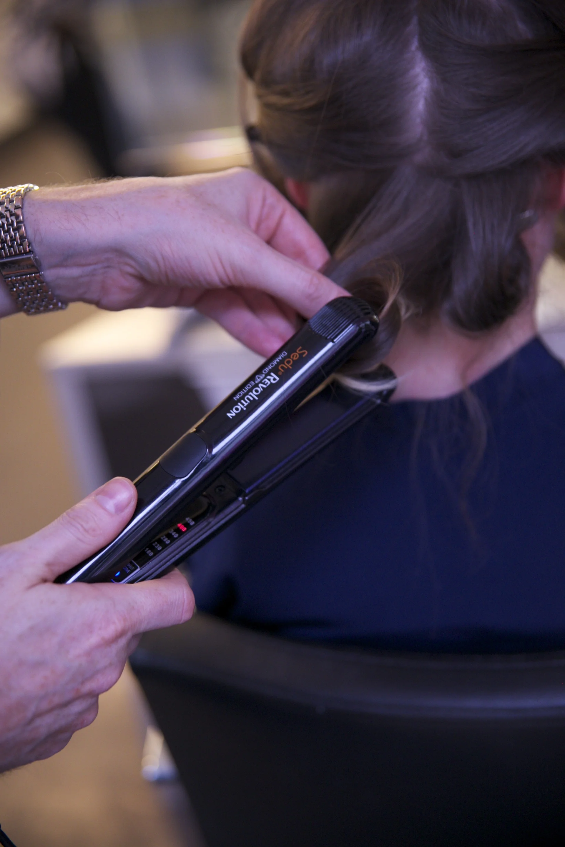 I loved seeing Tyson create magical curls with the help of the Sedu Revolution flat iron! He created pin curls by twisting my hair around the flat iron and then simply securing the pin curls with a bobby pin.