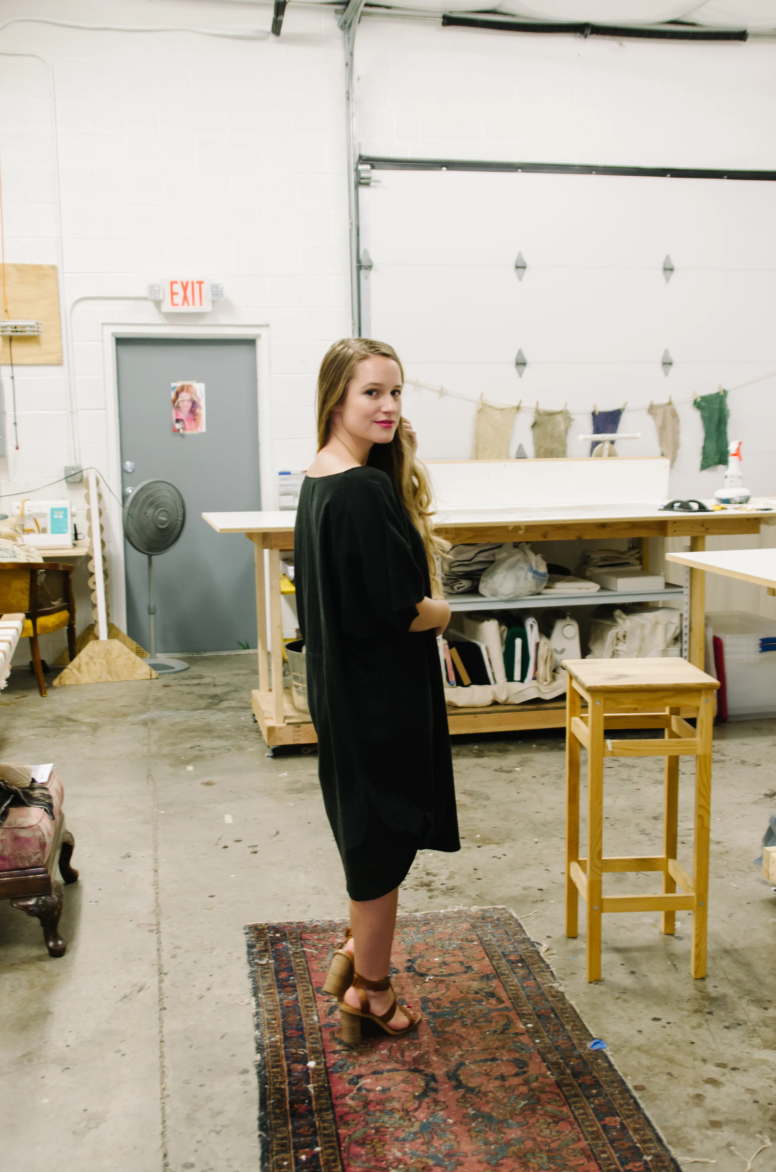 Touring their pretty studio + talking with these gems was such a delight. Also, I just HAD to go home with a few pieces for myself. I decided on the Staple Basic Dress in Sage and the gorgeous black dress above (currently sold out). Both are so comfortable & stylish.