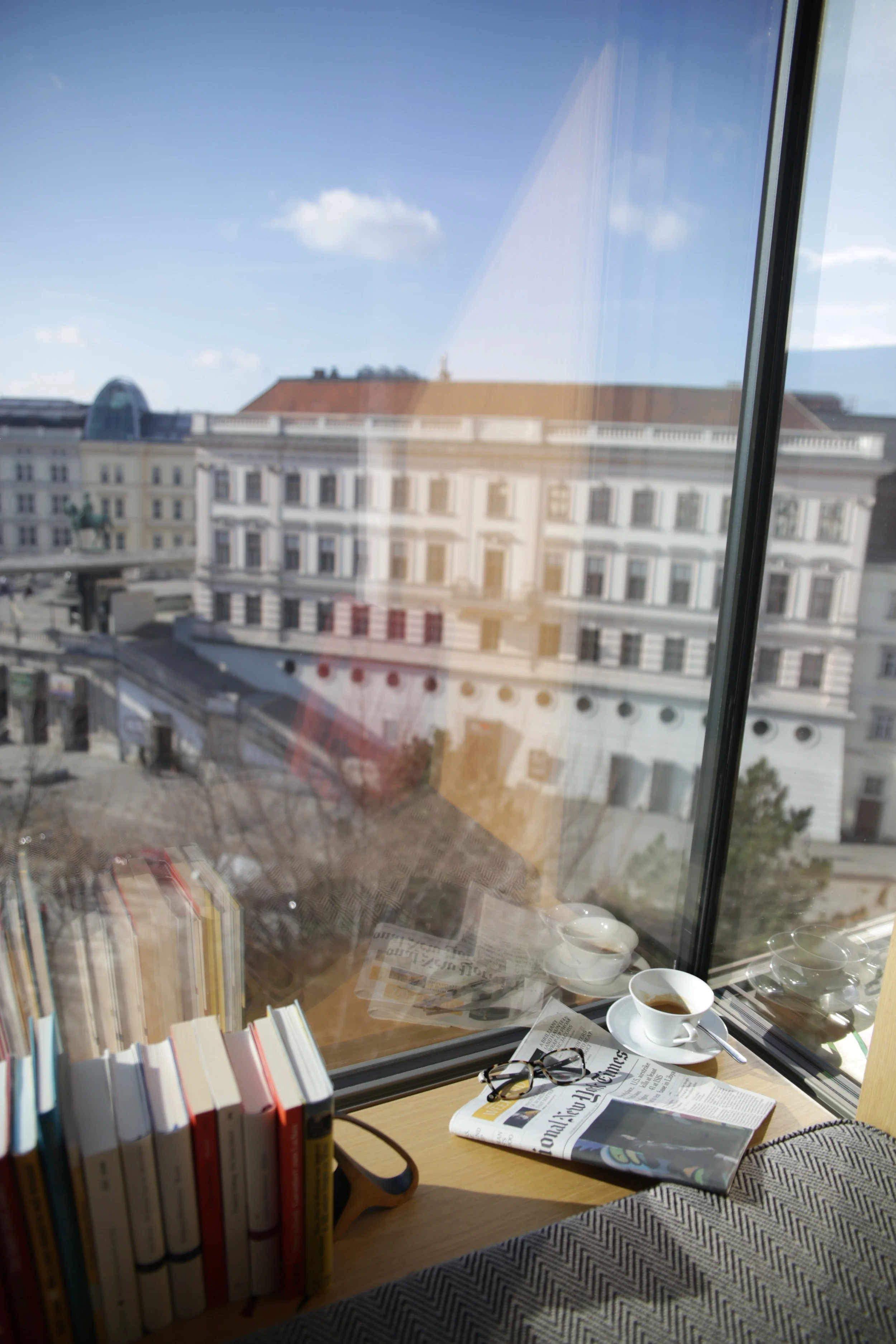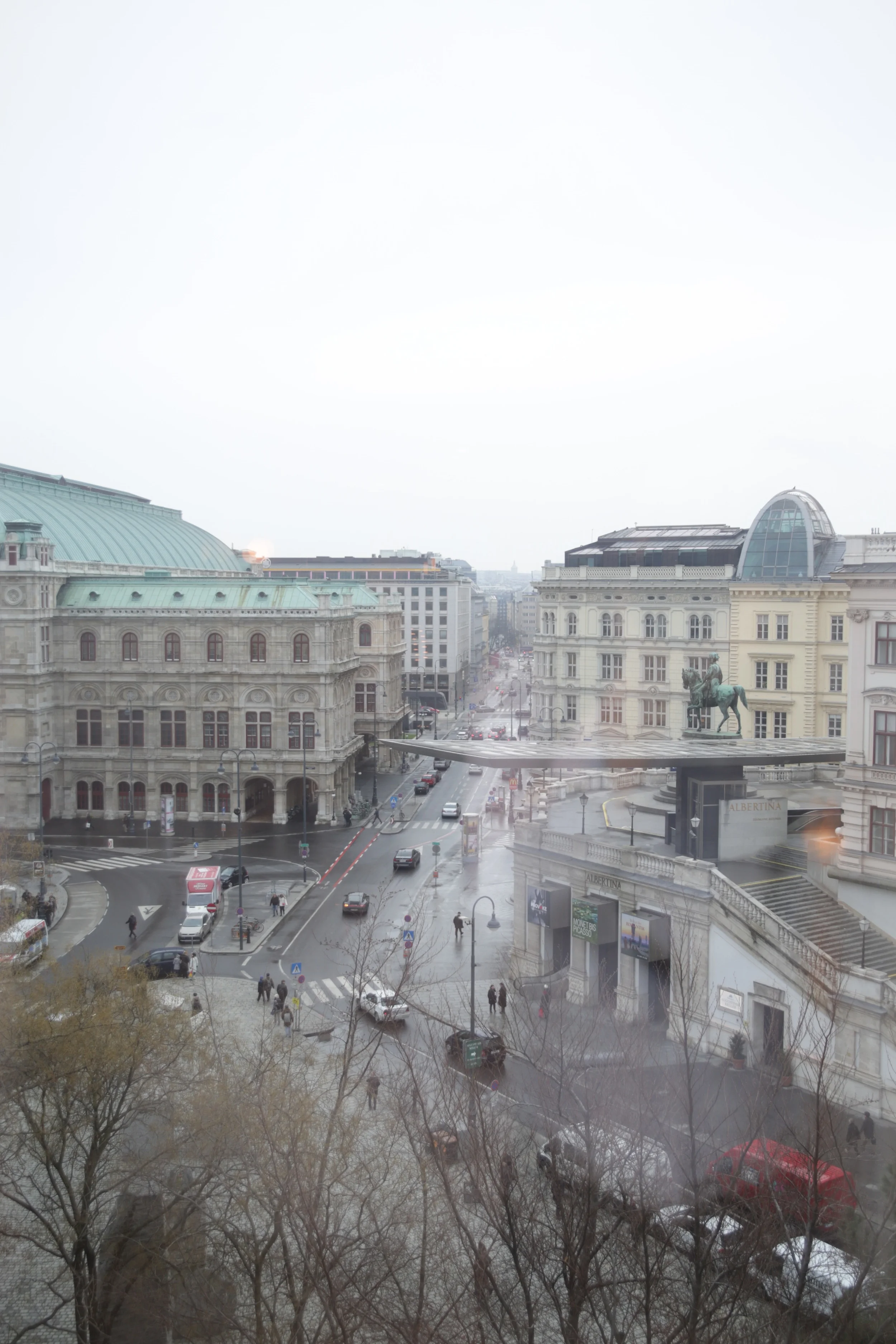 Now let’s talk about the room. The view from our hotel window couldn't be more breathtaking. We had the perfect view of the Vienna Opera House as well as some of my favorite cafes in Vienna. Our room was decorated like my dream NYC apartment-mid-century modern with marble twists. I loved the bright art work! My favorite thing about our room, however, was the window nook. I really loved sitting in the window with a cup of coffee reading my book. When I looked up, the view would sometimes overwhelm me. Another unusual thing I loved about the room was the huge closet space. We actually had a walk-in closet! I wanted to take it home with me. Did I mention the tub was to die for? Having the luxury of a deep soaking tub is something I don't have often so I really took advantage. It was bliss!