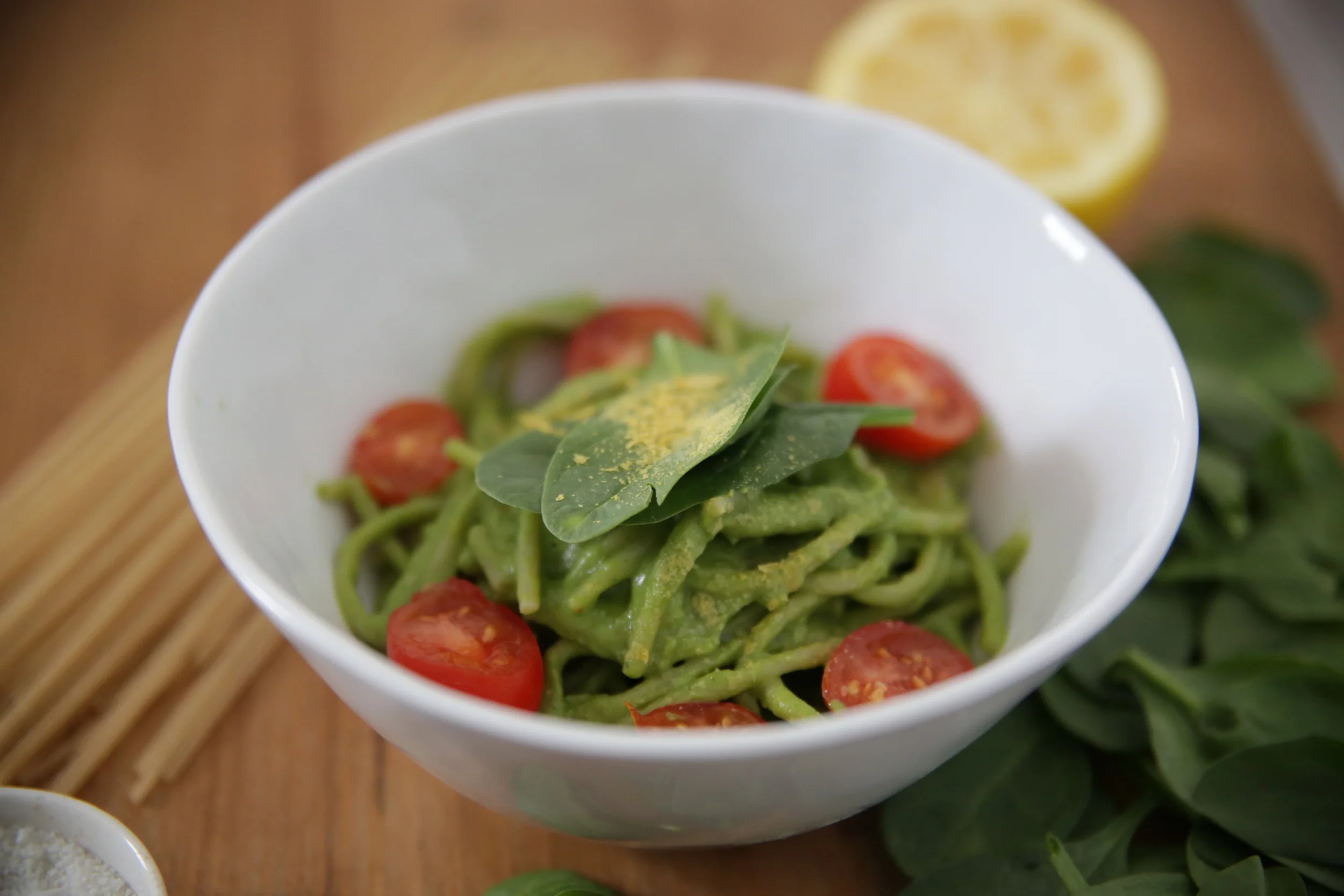 Just got back from a fun weekend with my husband in upstate New York. (Travel guide coming soon!). We had such an awesome time hiking, antiquing and eating...A LOT! When we came home, however, I didn't have time to cook a fancy dinner. In a time crunch, I love to cook my Avocado Pasta. This dish is creamy, comforting and full of flavor! I love how fresh it is. It's packed with avocado, spinach, and cherry tomatoes. A splash of lemon juice is the perfect zesty finish. Be sure to test out this rad recipe below. It's the perfect lunch or lightening-fast dinner!